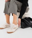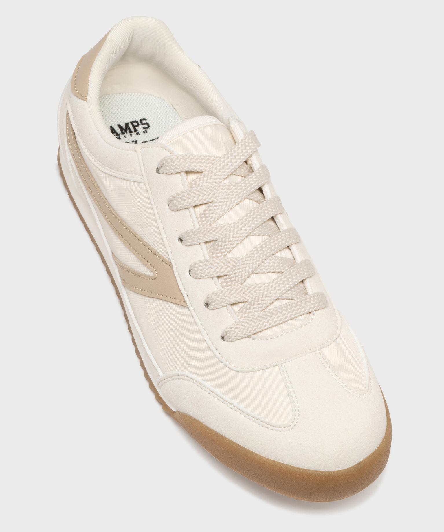 Ces baskets en toile, rehaussées d'empiècements contrastants au talon et sur les côtés, insufflent une allure citadine à la fois moderne et décontractée. Imaginées par Camps United, elles s'inspirent de l’esprit authentique des campus américains. Grâce à leur doublure moelleuse et leur col rembourré, elles offrent un excellent confort de marche. Ces baskets femme reposent sur une semelle fine à relief cranté qui assure une bonne adhérence. Associées à un jean ou une robe, elles signent un style dynamique et affirmé. Fermeture par lacets plats 6 œillets.