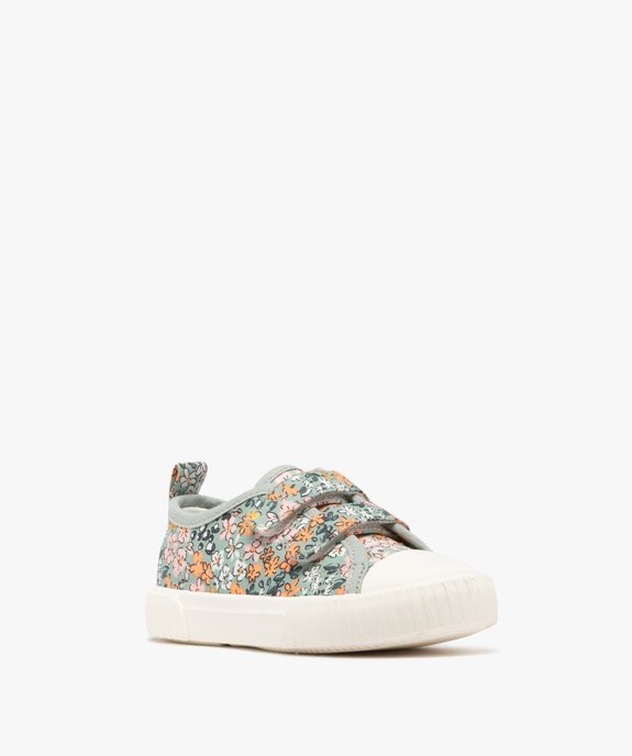 Baskets basses en toile fleurie à scratch fille vert clair