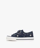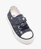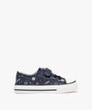 Baskets basses en toile imprimée à scratch fille bleu fonce