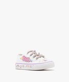 Laissez votre fillette exprimer son style unique avec ces baskets basses fille au design résolument original. Le dessus en coton assure une légèreté et une respirabilité optimales, parfaites pour les journées en mouvement. L’embout en gomme ajoute une protection supplémentaire et un effet stylé. Ornées de petits dessins et écritures façon graffitis, ces chaussures en toile se distinguent par leur look audacieux. La semelle épaisse, inspirée des skateshoes, offre un excellent amorti. Les lacets fantaisie, torsadés et colorés, apportent une touche de fun. Des baskets parfaites avec un bermuda en jean ample ou une robe sweat décontractée.