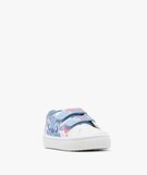 Illuminez les premiers pas de votre enfant avec ces baskets basses bébé fille ! Stitch, l'extraterrestre malicieux de Disney orne le côté de la chaussure irisée pour un look adorable. Les brides et le contrefort pailletés ajoutent une touche de magie. L’embout en gomme protège les petits pieds. Grâce aux deux brides scratch, ces baskets s'enfilent facilement et assurent un bon maintien. La semelle en élastomère garantit une grande stabilité. Associez ces baskets basses bébé fille avec un leggings coloré pour un style ludique et confortable.