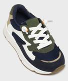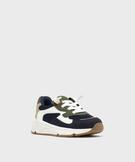 Baskets basses multi-matières à lacets élastiques bébé garçon bleu fonce