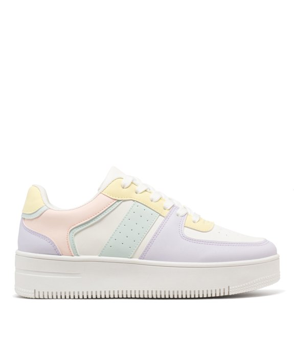Baskets basses multicolores à semelle plateforme femme blanc