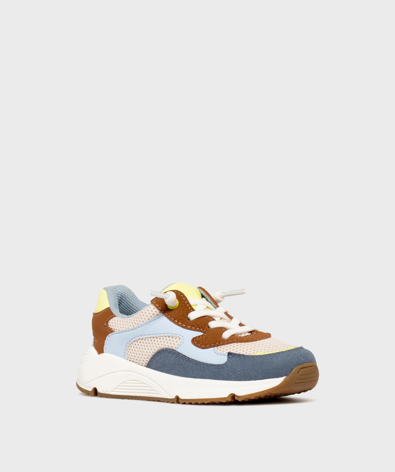Baskets basses multimatières avec lacets élastiques garçon - 5 MILES beige