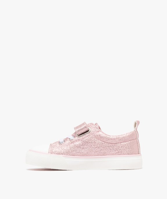Baskets basses pailletées à scratch fille rose clair