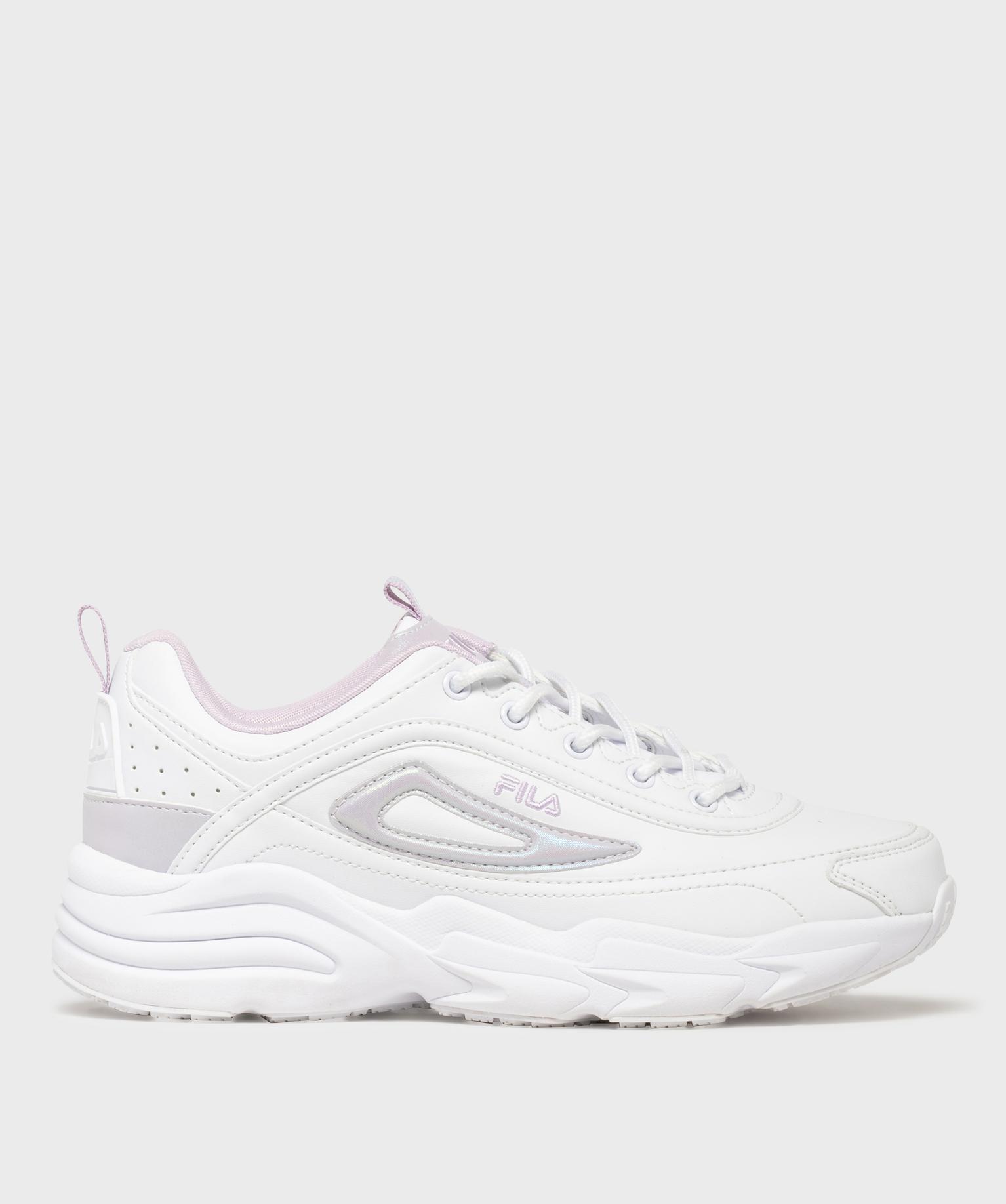 Fabuleuses baskets pour femme Fila ! Des baskets ultra légères, au col moelleux, à la couleur épurée égayée de touches de brillance irisée ! La tige des sneakers présente un mix d'empiècements lisses, perforés, surpiqués, sur une épaisse semelle. Fermeture par lacets ronds. 2 tirettes d'aide à l'enfilage.