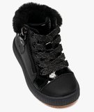 Baskets bébé fille mid-cut et fourrées avec détails vernis et scintillants[MISSING] noir