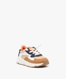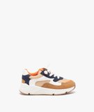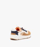 Comme les grands, ces baskets pour bébé garçon mélangent matières suédine, mesh et cuir imitation. Un style résolument sportswear et tendance qu'on adore ! Bébé peut chausser ses tennis multicolores avec un jean, un jogging et un sweat, ou bien une salopette en velours. Pour un confort optimal , le col, languette et la semelle intérieure sont moussées. Fermeture à lacets élastiques ajustables.