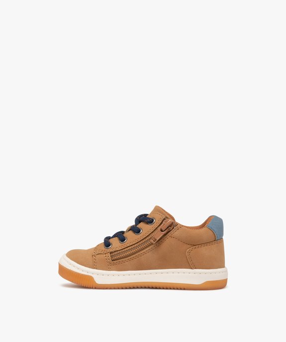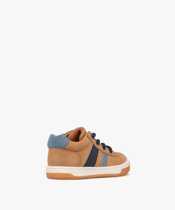Baskets bébé garçon mid-cut à zip avec bandes latérales contrastantes marron