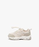 Baskets bébé garçon unies à semelle crantée et à lacets coulissants beige
