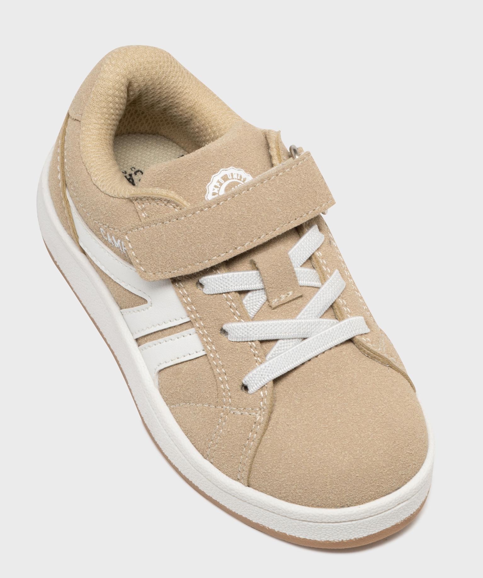 Assurez à votre enfant un look craquant inspiré de l’univers campus américain, grâce à ces jolies baskets Camps United. Un modèle en cuir imitation rehaussé de surpiqûres et d’empiècements contrastants sur le côté. Ces baskets garçon sont dotées de lacets élastiques et d’une bride à scratch assurant une manipulation facile pour les tout-petits. Elles accompagneront toutes les tenues sportswear des minis !