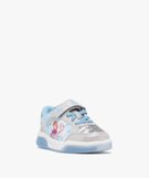 Votre fillette sera conquise par ces baskets La Reine des neiges. Un beau mix de paillettes et de reflets argentés servent de fond aux portraits des héroïnes du dessin animé de Disney, Anna et Elsa. Mais surtout, ces remarquables baskets pour fille sont montées sur une semelle bicolore translucide qui s’éclaire à chaque pas ! Des chaussures à porter avec une jupe et un sweat à sequins brillants. Lacets élastiques pailletées. 1 bride à scratch pailletée et marquée « Feel the spirit ». Chaussure confortable avec col et languette rembourrés.