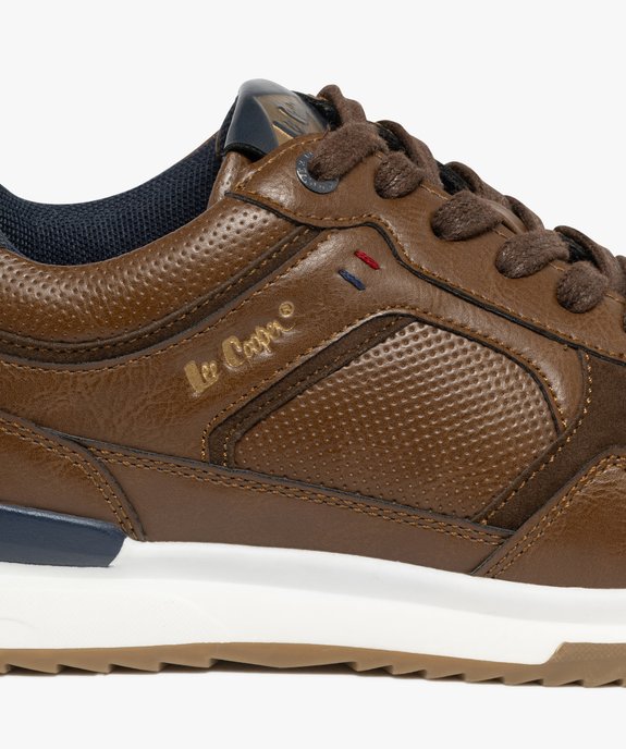 Ces baskets de ville Lee Cooper se distinguent par leur élégant mix de matières et de couleurs intemporelles. Elles sont réalisées en cuir imitation lisse et velours, avec des empiècements perforés ajoutant un esprit sportswear. Ces baskets homme se ferment par des lacets plats et reposent sur une semelle avec couche d’usure crantée pour une adhérence parfaite. Elles s’intègrent à merveille avec toutes les tenues citadines, qu’il s’agisse d’un ensemble jean + sweat à capuche ou chino + pull.