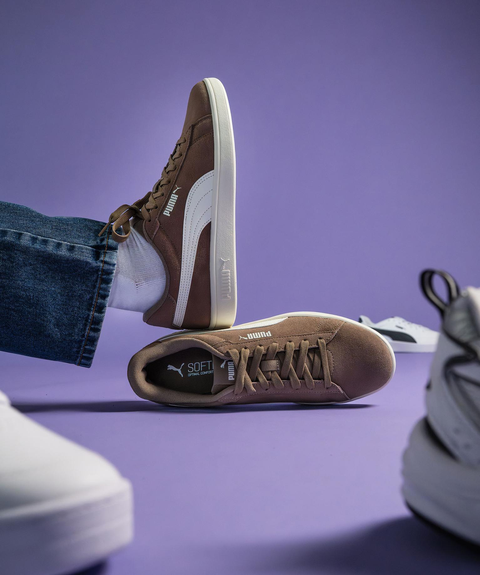 Les Smash 3.0 Puma s’imposent comme les baskets citadines indispensables du vestiaire des hommes. Des baskets avec dessus cuir velours, agrémentées des bandes signatures de la marque en cuir lisse et de logos placés à différents endroits sur la tige et la semelle. Ces baskets homme séduisent tant par leur design épuré que par leur confort, elles possèdent une semelle intérieure « Soft foam » très confortable et un épais rembourrage au niveau du col. Des sneakers à porter avec un jean comme avec un chino ou un pantalon léger. Fermeture lacets plats 7 oeillets.