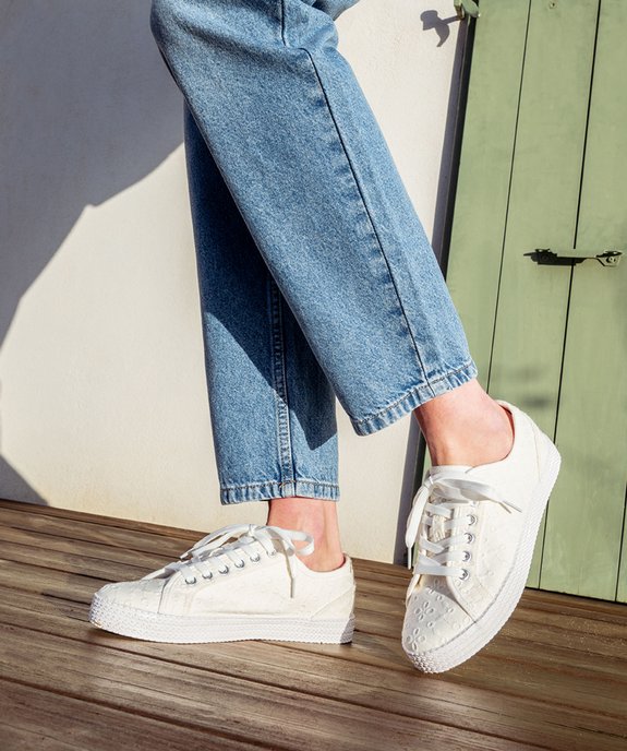 Baskets en toile à lacets avec épaisse semelle femme blanc