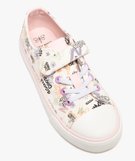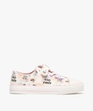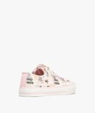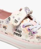Ces tennis en toile pour fille sont à croquer avec leurs petits motifs et leurs inscriptions façon graffitis. Avec une tige basse et une toile finement texturée, elles sont aussi pourvues d'un scratch et de lacets élastiques. Ces baskets pour fille sont montées sur une épaisse semelle à liseré coloré, avec un bout renforcé en élastomère. La semelle intérieure est moelleuse et très confortable.