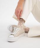 Baskets en toile métallisée à semelle plateforme femme dore
