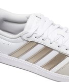 Tout en finesse, ces baskets pour femme optent pour une semelle fine, une forme allongée et un bout en amande. Avec un espace de laçage 7 oeillets entouré d'un liseré brillant en relief, vous retrouvez les trois bandes iconiques de la marque Adidas sur les côtés, avec un bel effet métallisé. Un style breakdance que vous pouvez porter avec une tenue confortable ou urbaine.