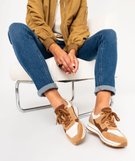 Avec une tige mêlant teintes et matières différentes, ces baskets pour femme inspirent confort et coupe féminine. Montées sur une épaisse semelle crantée et à liseré contrastant, la forme amande et le zip latéral qui complète les lacets, en font des tennis sophistiquées. Vous pouvez porter ces baskets à talon moyen avec un jean flare et un chemisier ou une jupe crayon et un blazer. Fermeture à lacets 5 oeillets dont 1 métallisé.