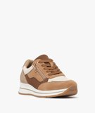 Baskets femme à semelle compensée avec zip latérale et à lacets marron