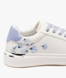 Baskets femme à semelle compensée détail fleuri blanc