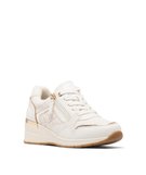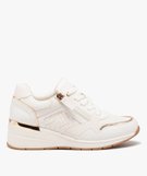 Baskets femme à talon compensé et à zip avec bout amande blanc