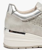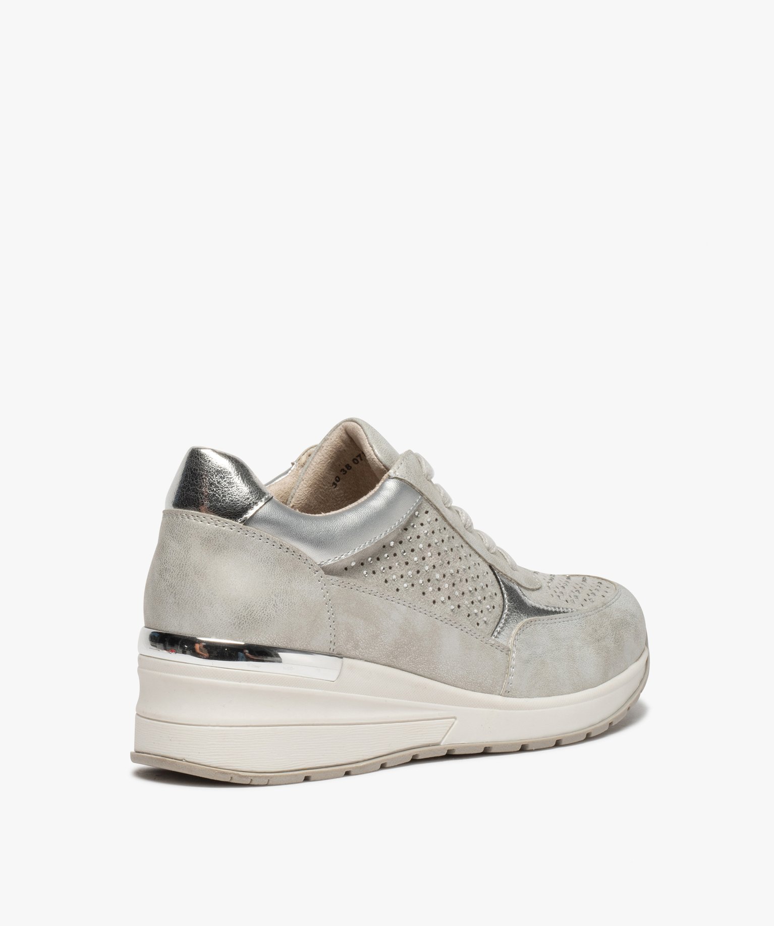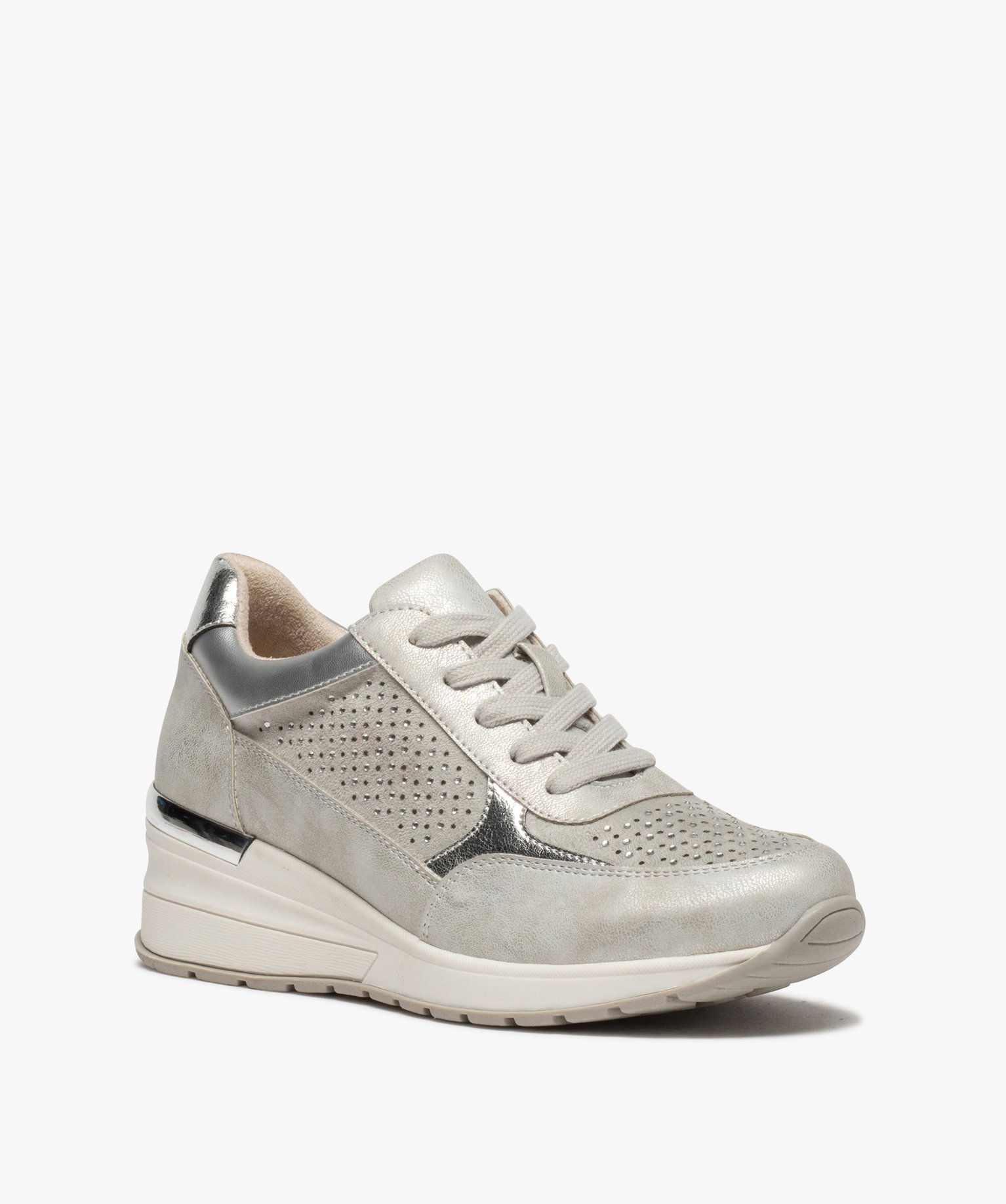 Baskets femme à talon compensé et strass fermeture lacets argente