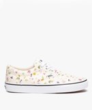 La sneaker féminine par excellence, cette paire de baskets pour femme reprend tous les codes classiques de la tennis aves sa semelle blanche contrastante entourée d'un liseré et légèrement compensée. Vans "Off the Wall" signe ici un joli modèle en toile pour la saison Printemps-Eté. Avec sa tige recouverte d'un tissu lisse, vous pouvez les porter avec un jeans ou une jupe crayon pour un look casual et sa touche sportswear. Fermeture à lacets plats 4 œillets métalliques.
