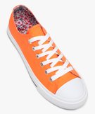 Baskets femme en toile à bout renforcé fermeture lacets orange