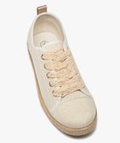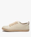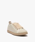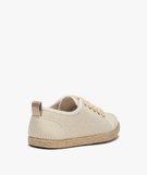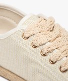 Ces baskets pour femme se distinguent par leur belle association de toile et de cordelette. Sur le dessus, une toile épaisse parsemée de quelques fils métallisés pour une touche glamour. Sur la semelle intermédiaire, de la cordelette tressée façon espadrilles pour une touche bohème. Et pour couronner le tout, les lacets sont en ruban façon crochet : une finition originale, qui se marie merveilleusement bien avec ces tennis chics et poétiques ! Fermeture lacets 5 œillets métalliques.