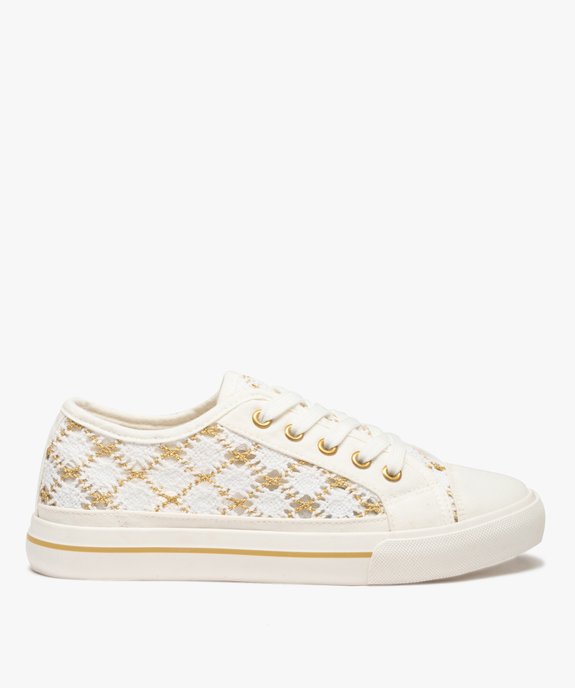 Envie d’adopter des tennis à l’allure bohème ? Ces baskets femme sont faites pour vous ! Ici, la tige est en cordelette tissée, marquant un motif ajouré : l’idéal pour garder les pieds au frais. Ces chaussures en toile, très estivales, sont rehaussées de quelques fils brillants, parfaitement assortis aux œillets en métal vieilli et au liseré coloré qui apparaît sur la semelle. Les empiècements au bout du pied et le long des œillets sont en toile serrée unie pour une meilleure robustesse dans le temps. Fermeture lacets plats 5 œillets.