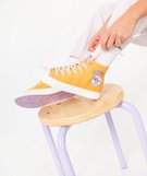 Fun et tendances, ces baskets en toile montante affichent un Stitch imprimé sur le côté, ce personnage Disney adorable, que tout le monde adore ! Montées sur une semelle compensée de 3 cm, ces tennis pour femme s'équipent également de lacets bicolores. Un modèle idéal pour habiller vos tenues décontractées de saison, qui vous apportera également un excellent confort grâce à la semelle intérieure 100% coton et moussée. Avec un look total denim ou une robe longue unie, ces baskets Disney feront sensation.