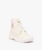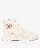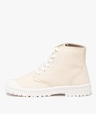 Baskets femme en toile montante unie à semelle crantée avec détail brodé beige