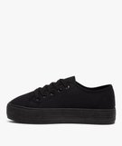 Ces baskets pour femme sont indispensables pour gagner quelques centimètres tout en s'assurant un style tendance ! On aime l'inspiration années 90 de ces tennis à semelle plateforme. On les retrouve dans un bel éventail de couleurs toutes aussi mode les unes que les autres. Elles se portent bien sûr avec tout type de pantalon, mais on les apprécie aussi avec une jupe longue ou courte. Des tennis en toile unie avec semelle plateforme de 3 cm. Doubles surpiqûres pour une bonne robustesse dans le temps. Fermeture lacets plats 5 œillets métalliques.
