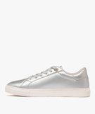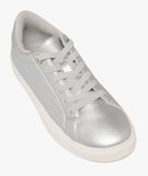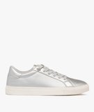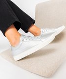 Baskets femme fourrées avec dessus métallisé et à semelle blanche argente