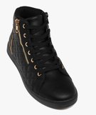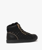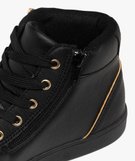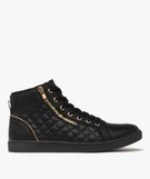 Baskets femme mid-cut à zip et à lacets avec côté matelassé noir