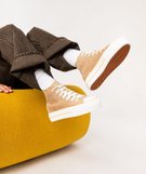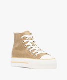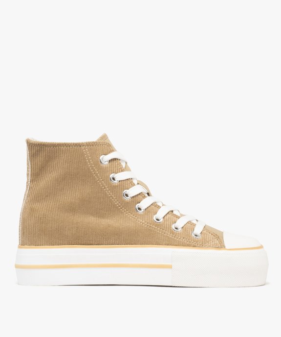 Baskets femme montantes à semelle plateforme et en velours côtelé beige
