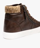 Baskets femme montantes avec col en maille à lacets et zip fantaisie marron