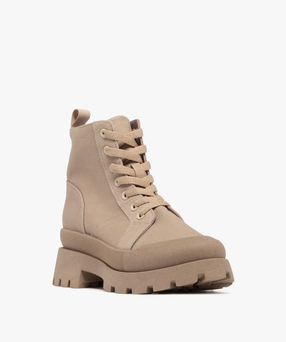 Baskets femme montantes en toile à semelle épaisse et crantée beige