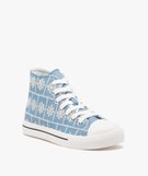 Baskets femme montantes en toile denim à fleurs brodées bleu