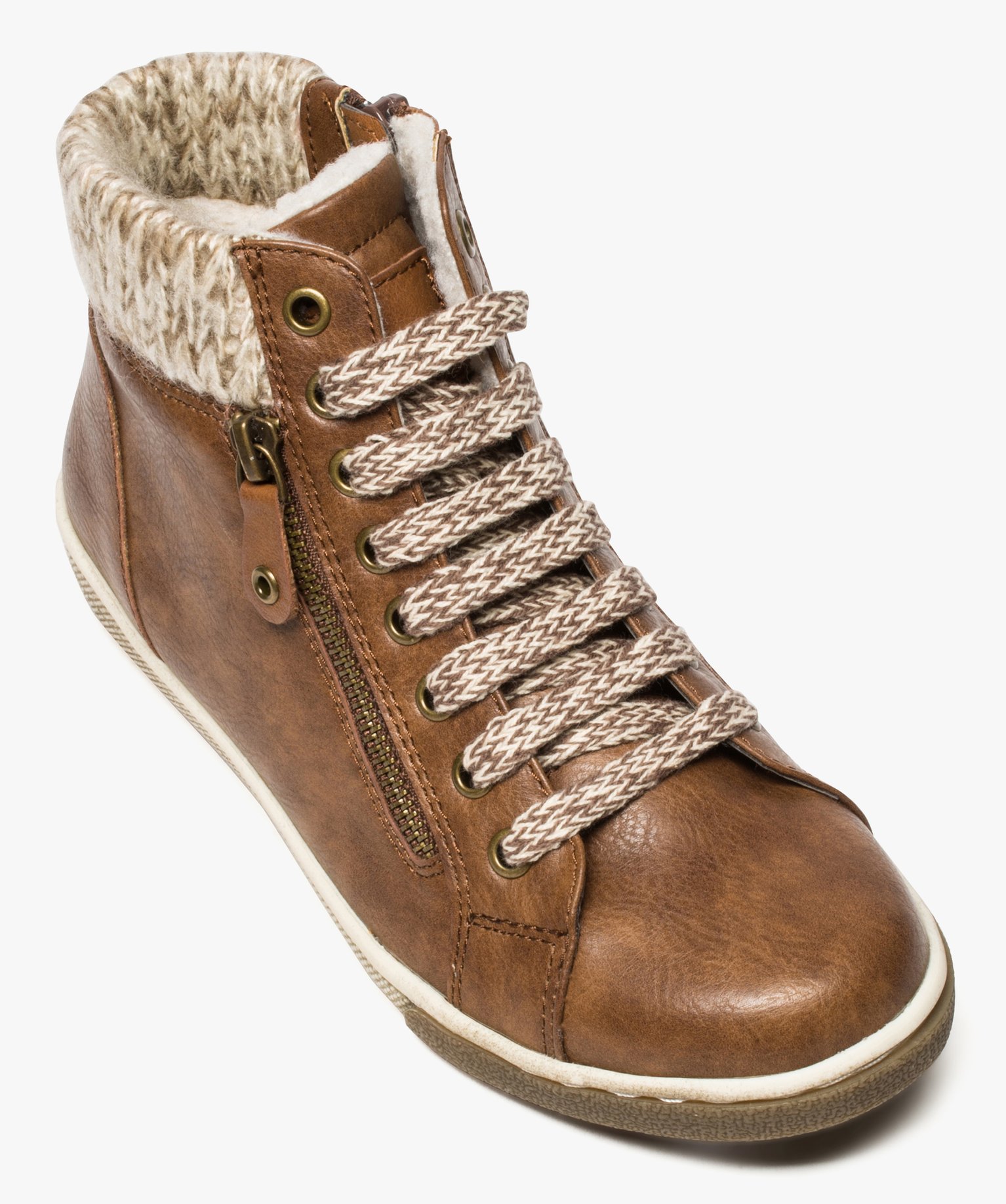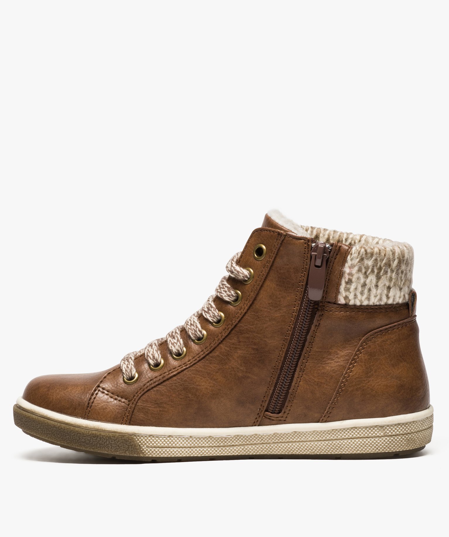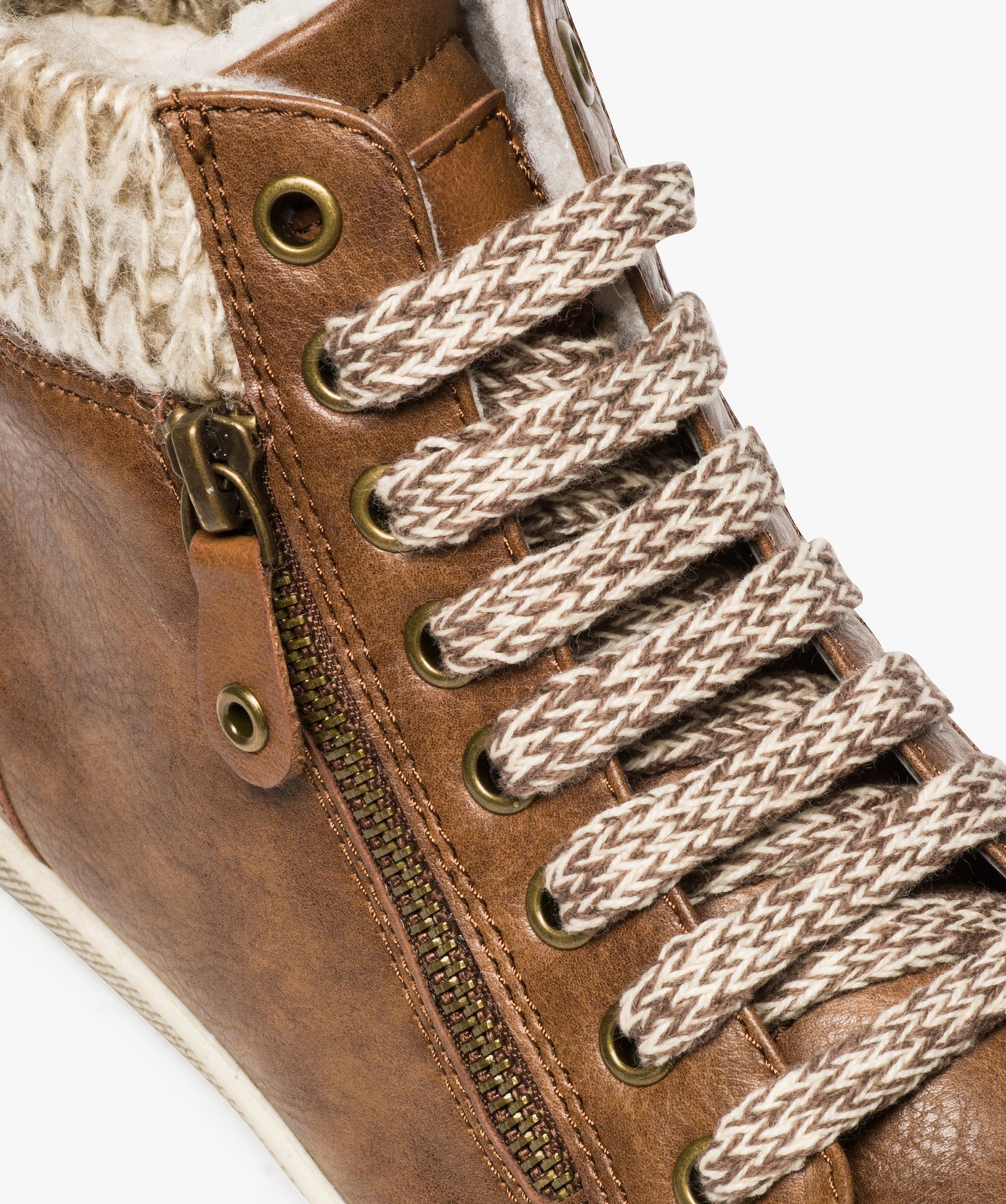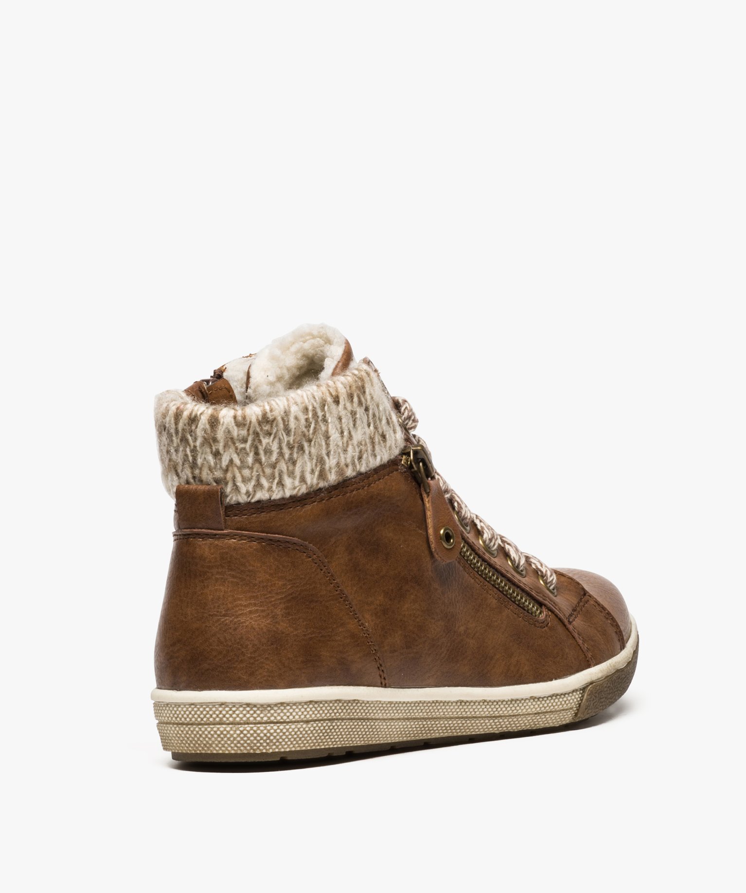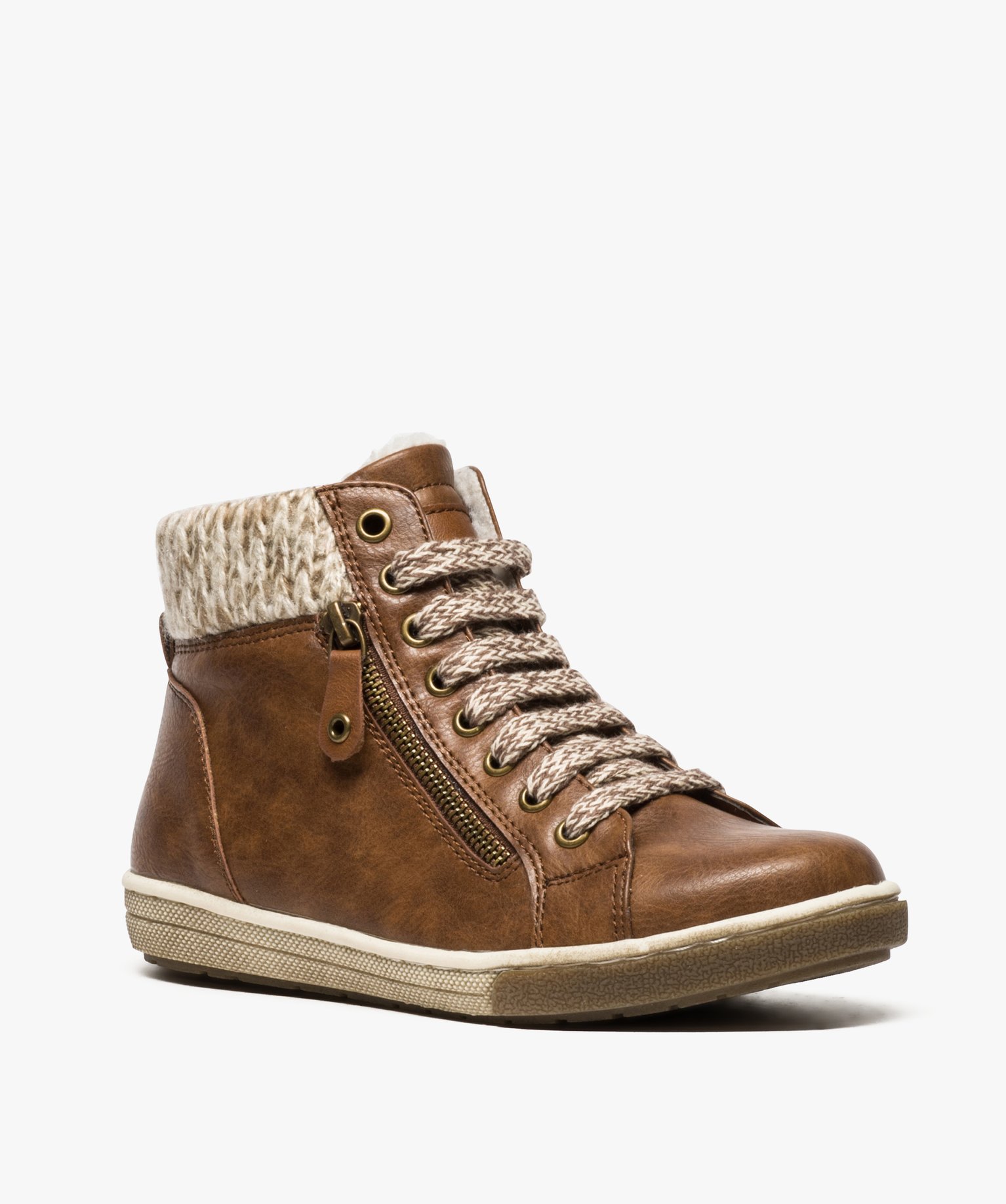 Ces baskets pour femme doublées de fourrure imitation sont idéales pour affronter les basses températures ! On aime leur style très urbain avec zip décoratif sur le côté et semelle à effet vieilli. Le col chaussette et les lacets tricotés lui donnent tout son style hivernal en gardant les pieds au chaud. Fermeture par zip intérieur et lacets plats 8 œillets. Un modèle de baskets stylé et sans prise de tête comme on les aime !