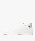 Rentrez dans l’univers ludique et coloré de la marque Benetton avec ces baskets à lacets ! Des tennis pour femme à tige basse en matière lisse unie, avec laçage sur la longueur. Un design des plus classiques, qui pourtant sort du lot grâce à la finition originale du contrefort : un empiècement pailleté entouré de rubans multicolores. On adore ! Ces baskets Benetton seront parfaites avec un jean retroussé et un sweat coloré. Fermeture lacets plats 7 œillets métal peint.