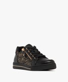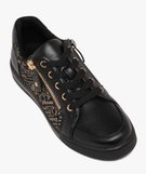 Baskets femme unies à lacets et à double zip avec détails imprimés fantaisie noir