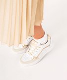 Baskets femme unies en cuir avec détails métallisés - Alma Planète blanc