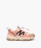 Baskets fille à semelle épaisse crantée avec lacets élastiques à bouton bloquant rose