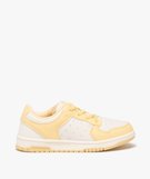 Baskets fille bicolores à bout rond et lacets élastiques jaune