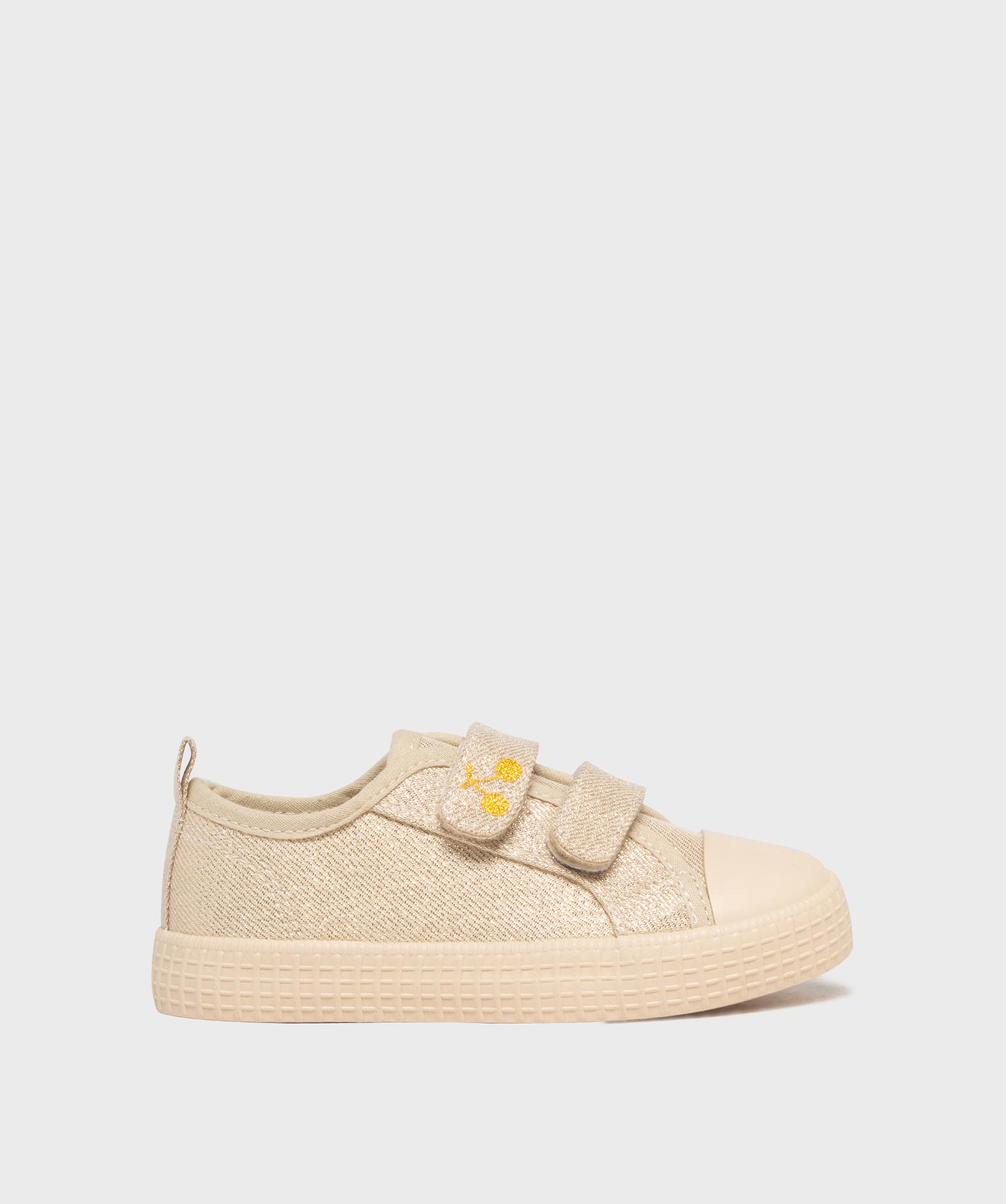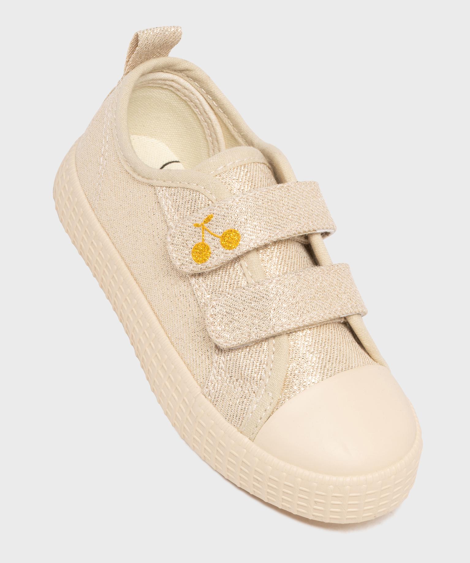 Ces baskets pour fille adoptent les paillettes joliment et de façon girly. Des tennis en toile montées sur une épaisse semelle, avec talon et bout renforcés en élastomère. On adore les deux scratch dont le premier décoré d'une cerise. Ces baskets pour enfant sont idéales pour la saison et habiller une robe bohème, un jean ou bien une jupe longue en jean.