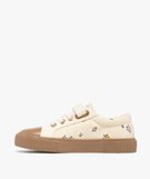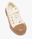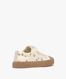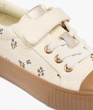 Baskets fille en toile fleurie avec scratch et semelle épaisse contrastante beige