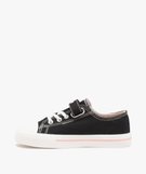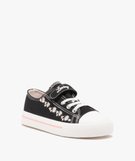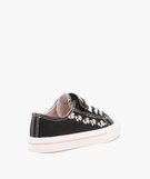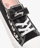 Baskets fille en toile unie à scratch avec fleurs brodées noir