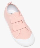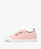 Ces baskets pour fille s’inscrivent parmi les classiques du vestiaire d’été et de demi saison. On retrouve ici la forme de classiques chaussures de tennis en toile, avec fermeture scratch et bout renforcé en élastomère. La tige est en toile serrée unie, avec tirette sur le contrefort et biais de finition ton sur ton. Ce sont des baskets toutes simples que les filles porteront autant avec un short qu’une jupe imprimée ou une robe. Semelle contrastante.